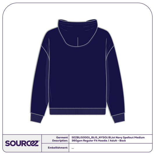 Regular price $50.20 NZDSale price $50.20 NZD Regular priceUnit price ( per )BList Navy Spellout Medium 360gsm Regular Fit Hoodie / Adult